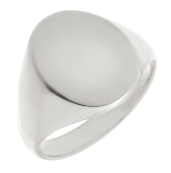 A large, gents size plain oval signet ring. This ring measures approximately 19x15mm.