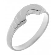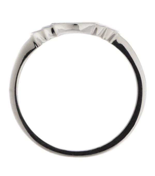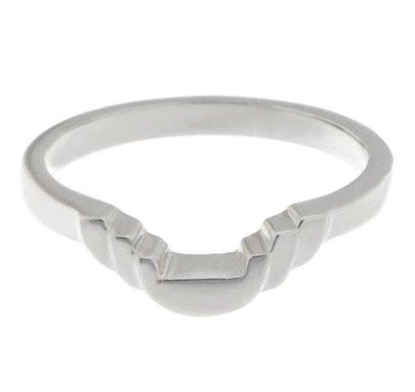 An art deco style shaped wedding band designed to fit next to, around another ring.