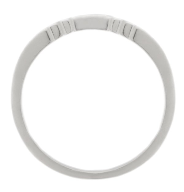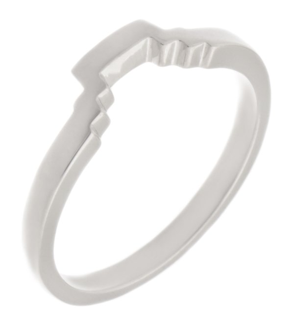A stepped, cut out, shaped wedding band in an art deco style, designed to fit next to another ring, especially our art deco emerald cut rings.