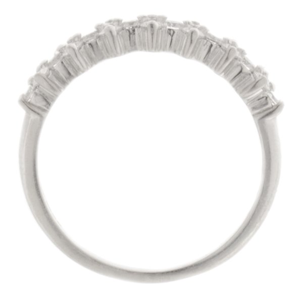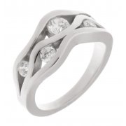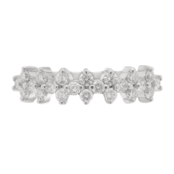 A modern, 3 row, designer eternity style ring. Claw set with three rows of round brilliant cut diamonds.