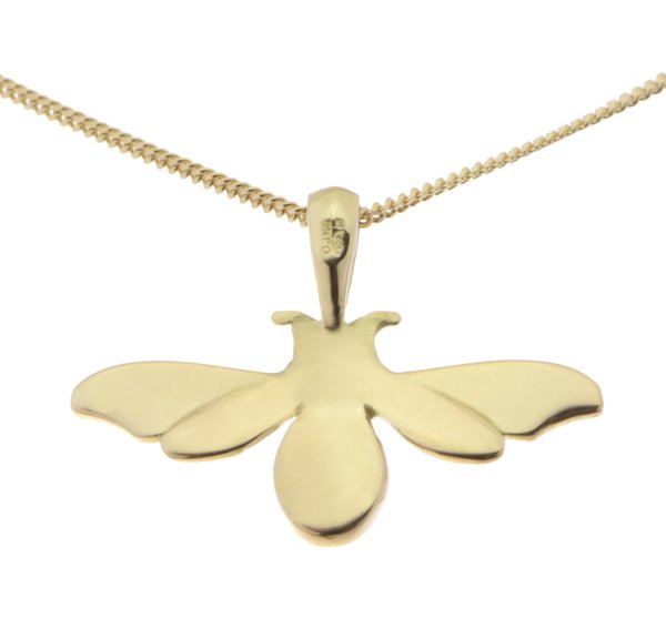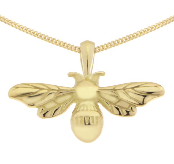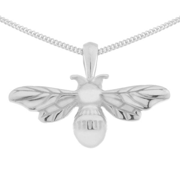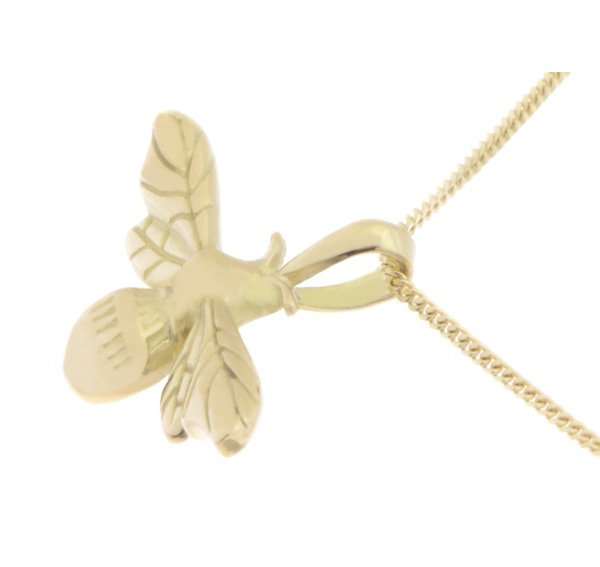 A contemporary style designer buzzing bee charm design pendant with open wings and a single loop or bail.