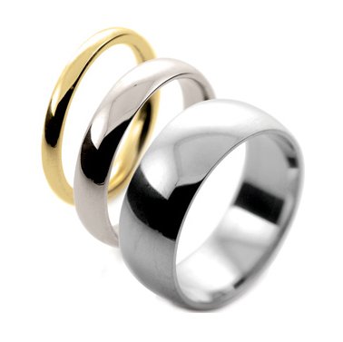A classic plain traditional court shaped wedding band ring, available in light, medium and heavy gauge.