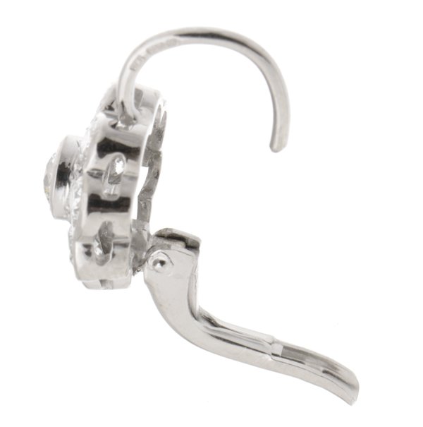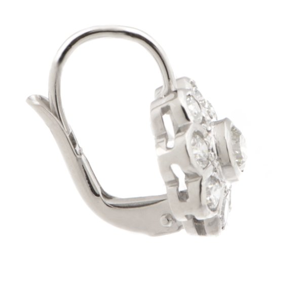 Diamond cluster earrings with round brilliant cut diamond surround and a larger centre diamond in a daisy flower style setting.