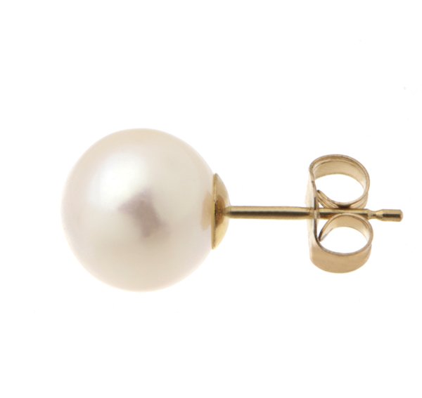 A classic soiltaire round freshwater cultured pearl stud earring.