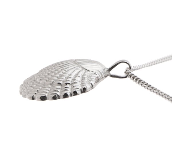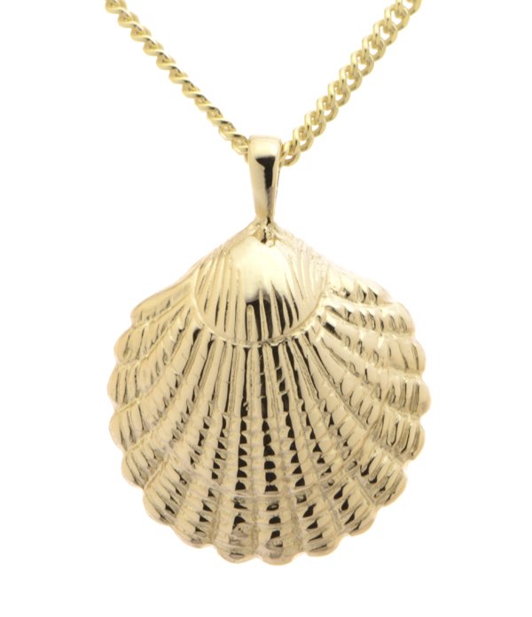 A classic seashell design pendant with a domed textured surface and a single loop.