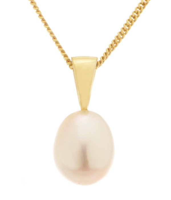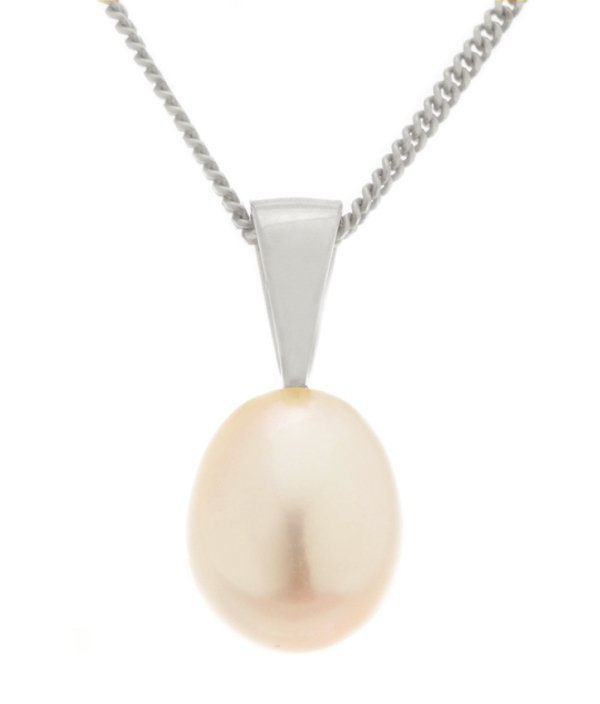 A classic tear drop shaped 7-8mm white cultured river pearl pendant with a plain loop.