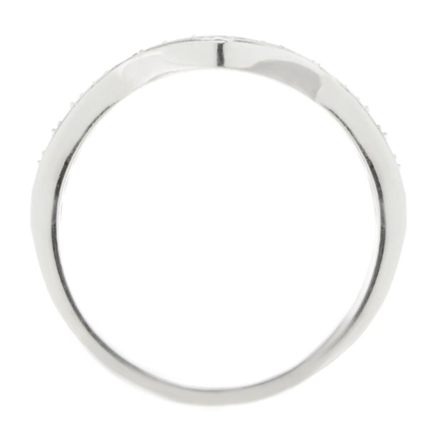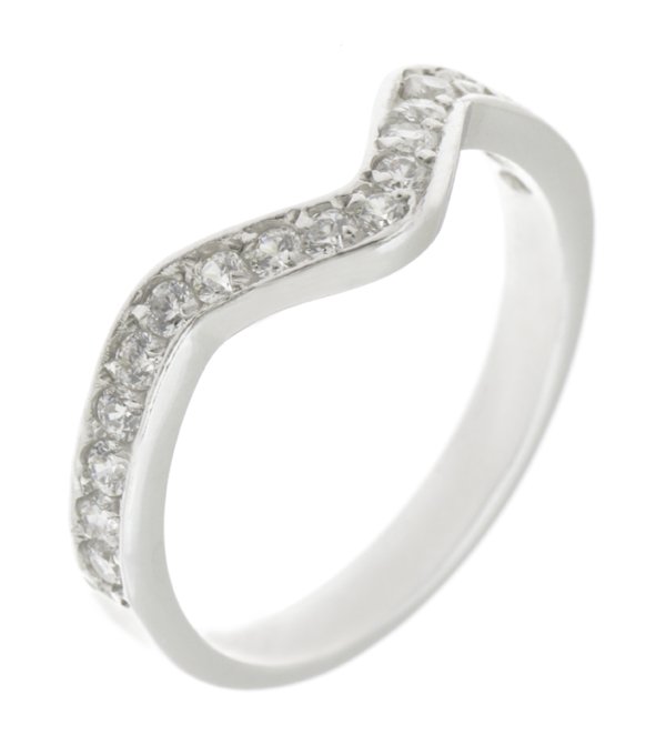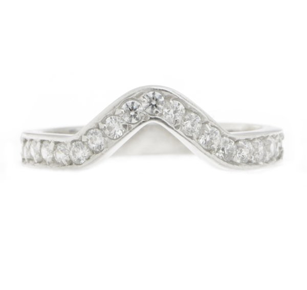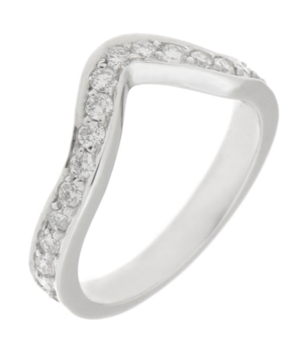 An elegant wishbone shaped ring with grain set round brilliant cut diamonds. Designed to be worn on its own or to fit next to or around an engagement ring.