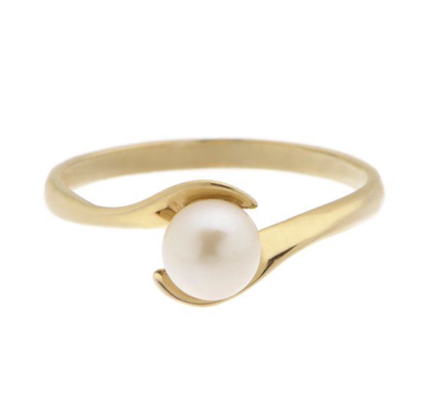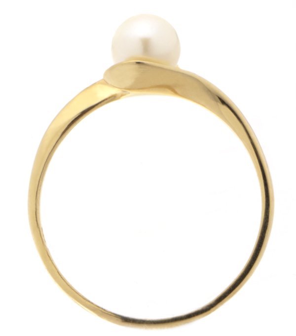 A modern crossover style rting with a solitaire round freshwater cultured pearl.
