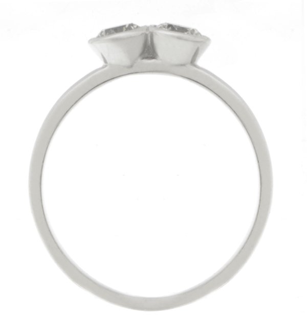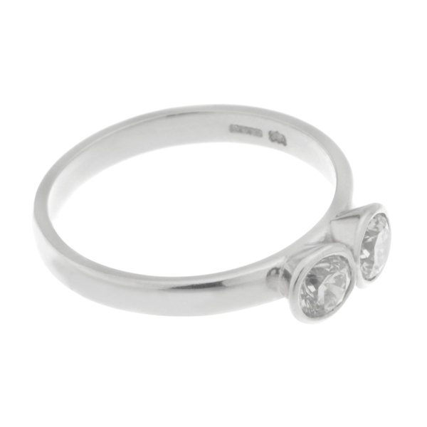 A classic rubover set diamond ring with a modern, contemporary twist. it is unusual in that it has two diamonds.