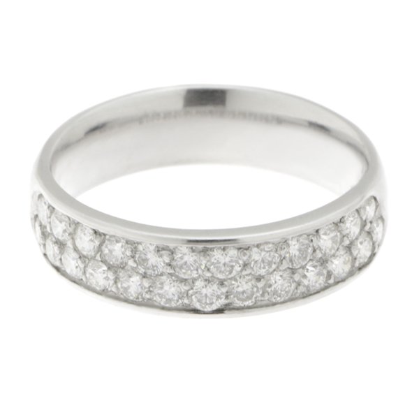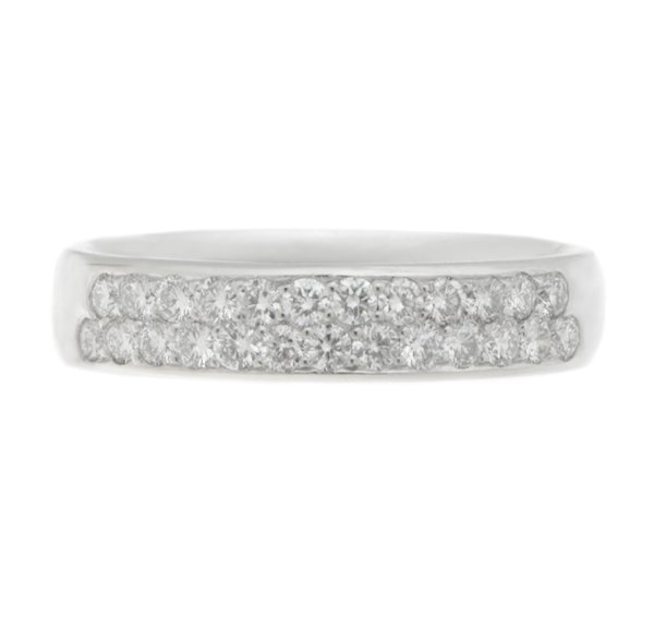 A classic two row round brilliant cut diamond grain set eternity ring.