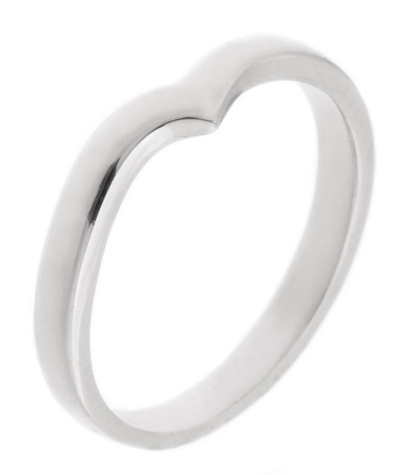 A shaped wedding ring with a gentle curved shape to the right. Opposite shape also available.