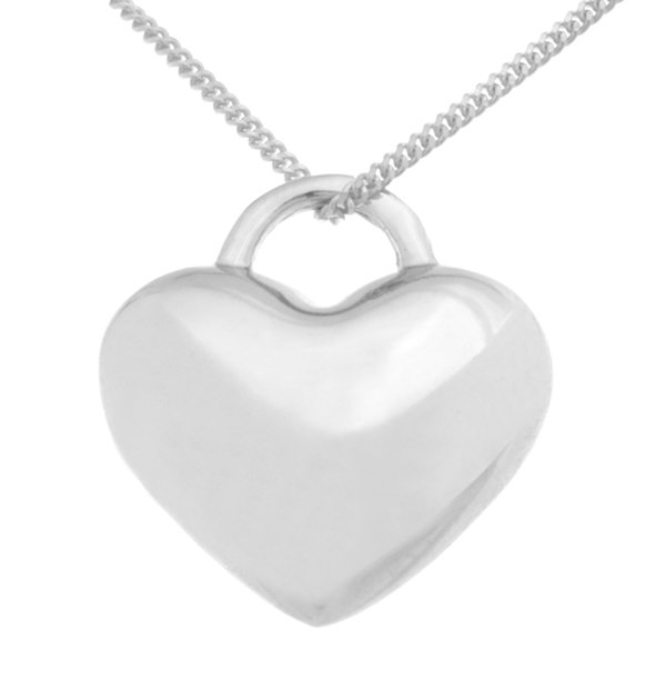 A large domed shape heart pendant with a large loop for the chain to pass through.