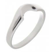 A shaped wedding band with an oval shaped cut out designed to fit next to, around another ring.