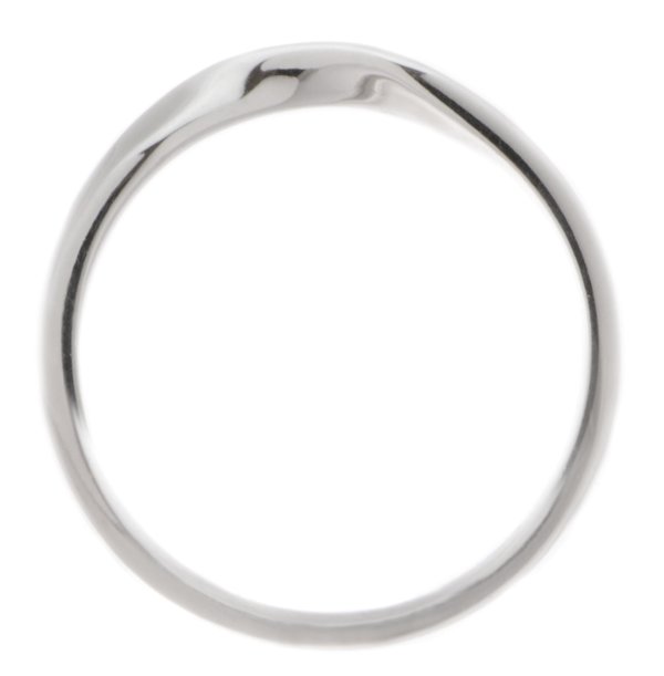 A modern, contemporary stoneless ring with a twist ribbon shaped design and a court profile. The overall width is approximately 3mm