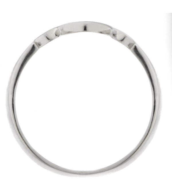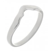A wide, shaped wedding band designed to fit next to a trilogy ring.